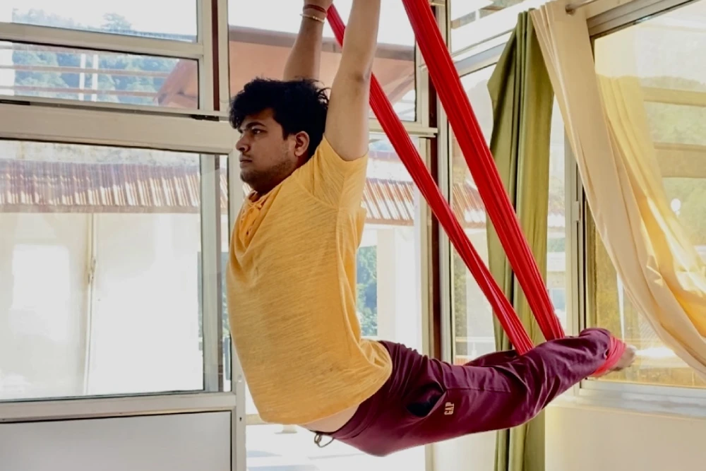 Aerial Yoga is a modern and innovative form of yoga that uses a hammock or silk fabric suspended from the ceiling to support and enhance traditional yoga poses. It is also great for building core strength, enhancing balance, and improving overall body awareness. It’s accessible to beginners and advanced practitioners alike, offering a fun and playful approach to yoga.